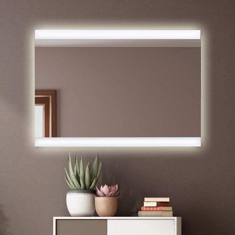 Espejo rectangular retroiluminado LED con pulsador táctil.