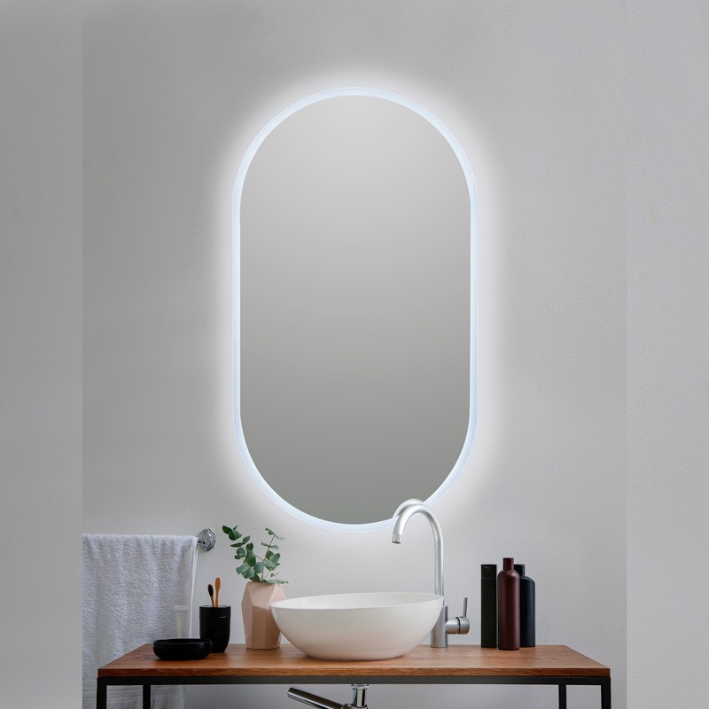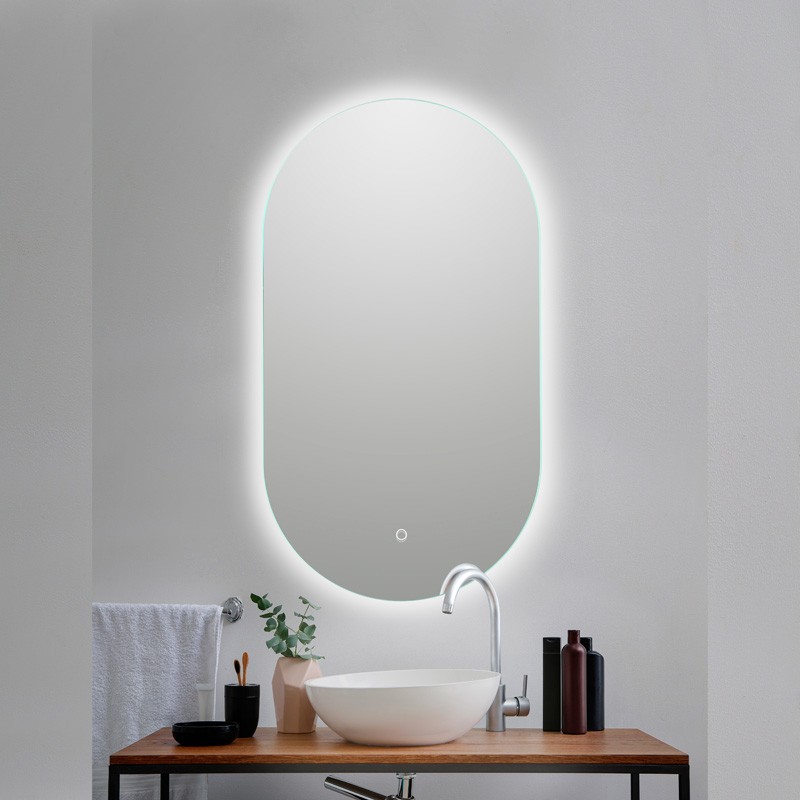 Espejo ovalado retroiluminado LED de 50x90 cm con sensor táctil integrado en el espejo.