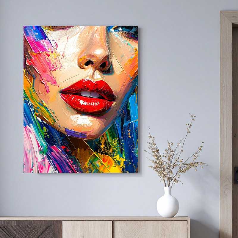 Ilustración artística de gran impacto de mujer con labios rojos.