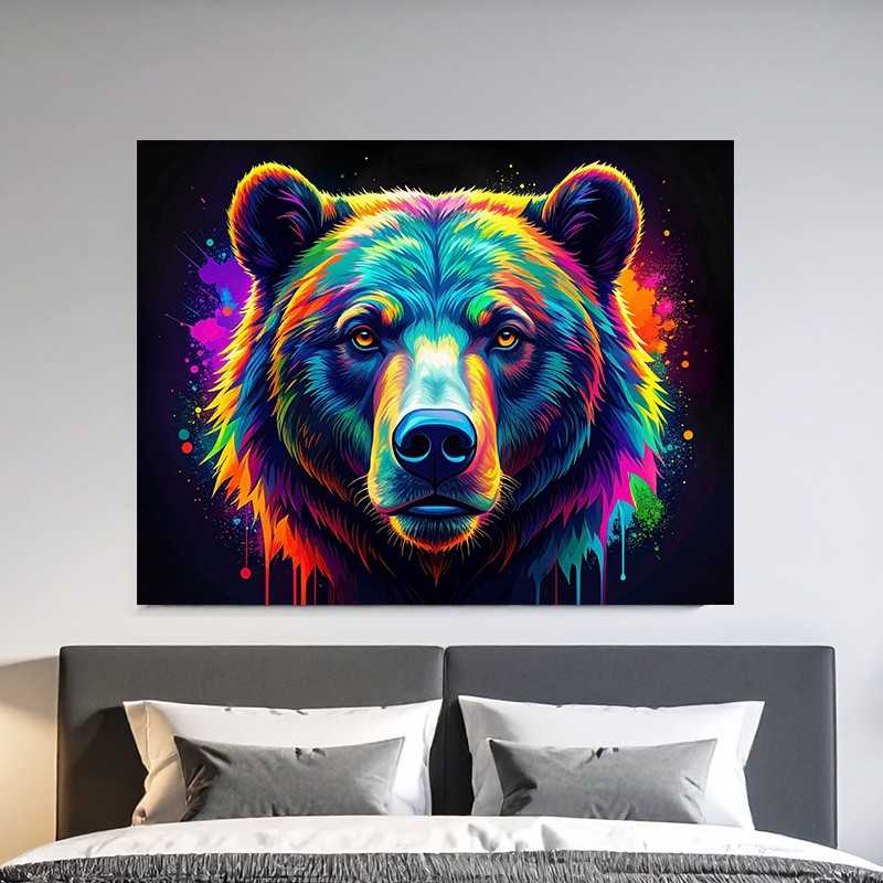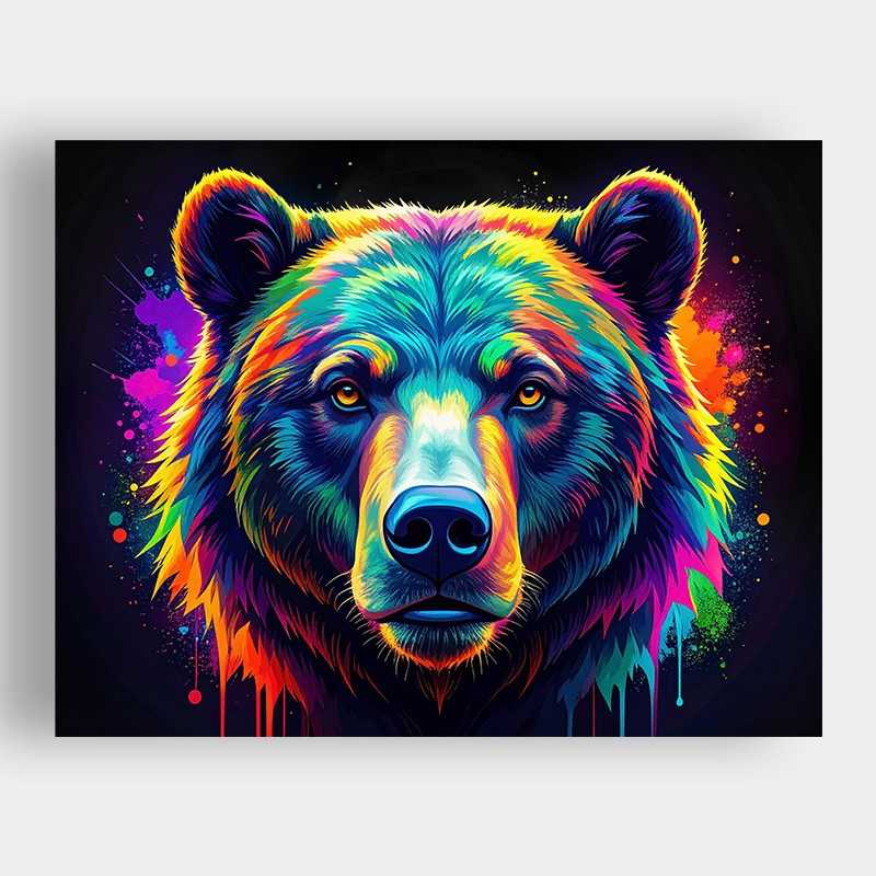 Ilustración mística de un oso de colores.