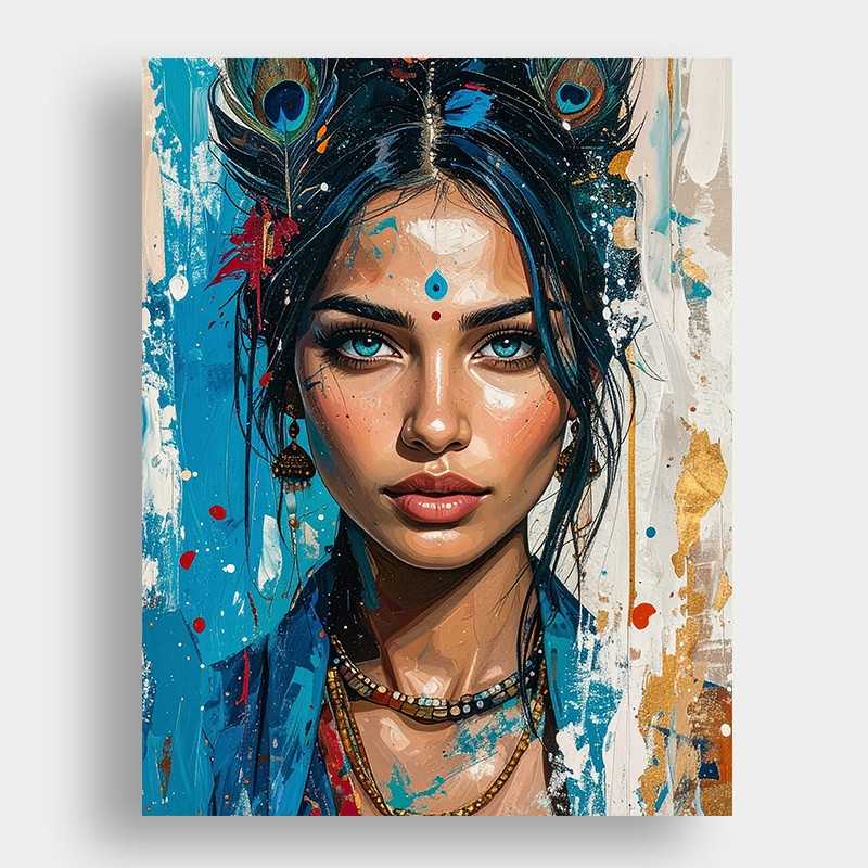 Retrato estilo de arte callejero de mujer con ornamentos.